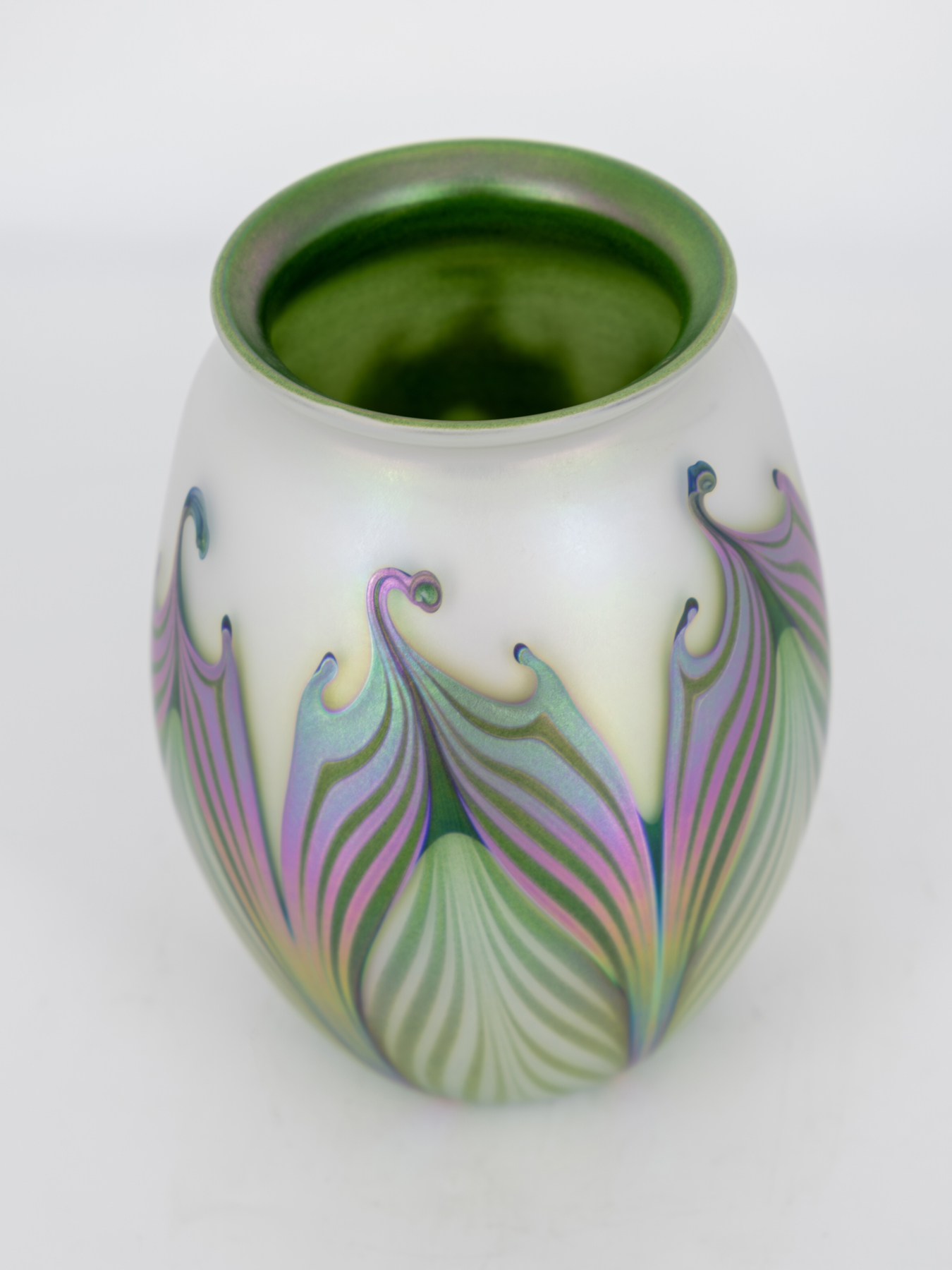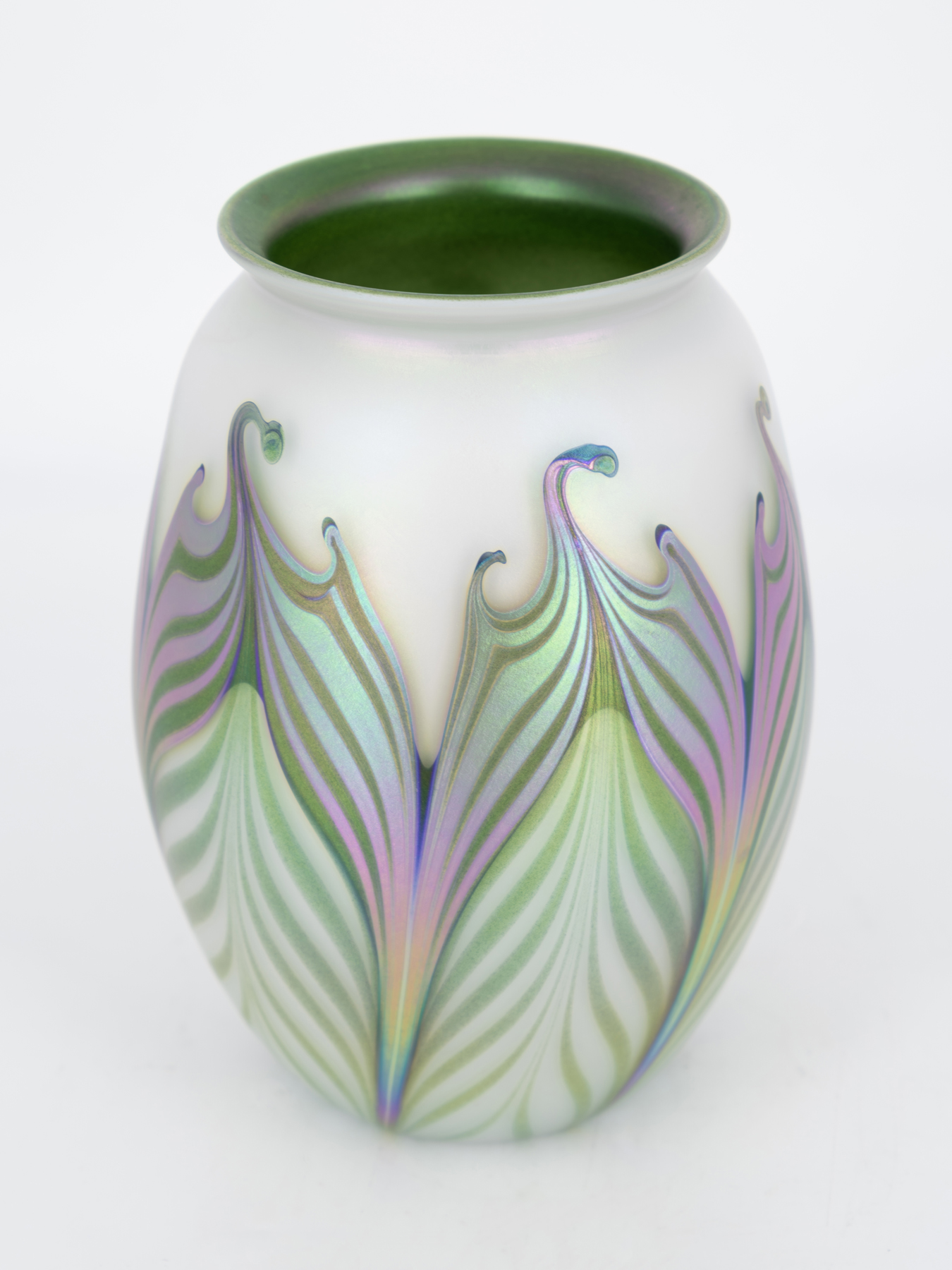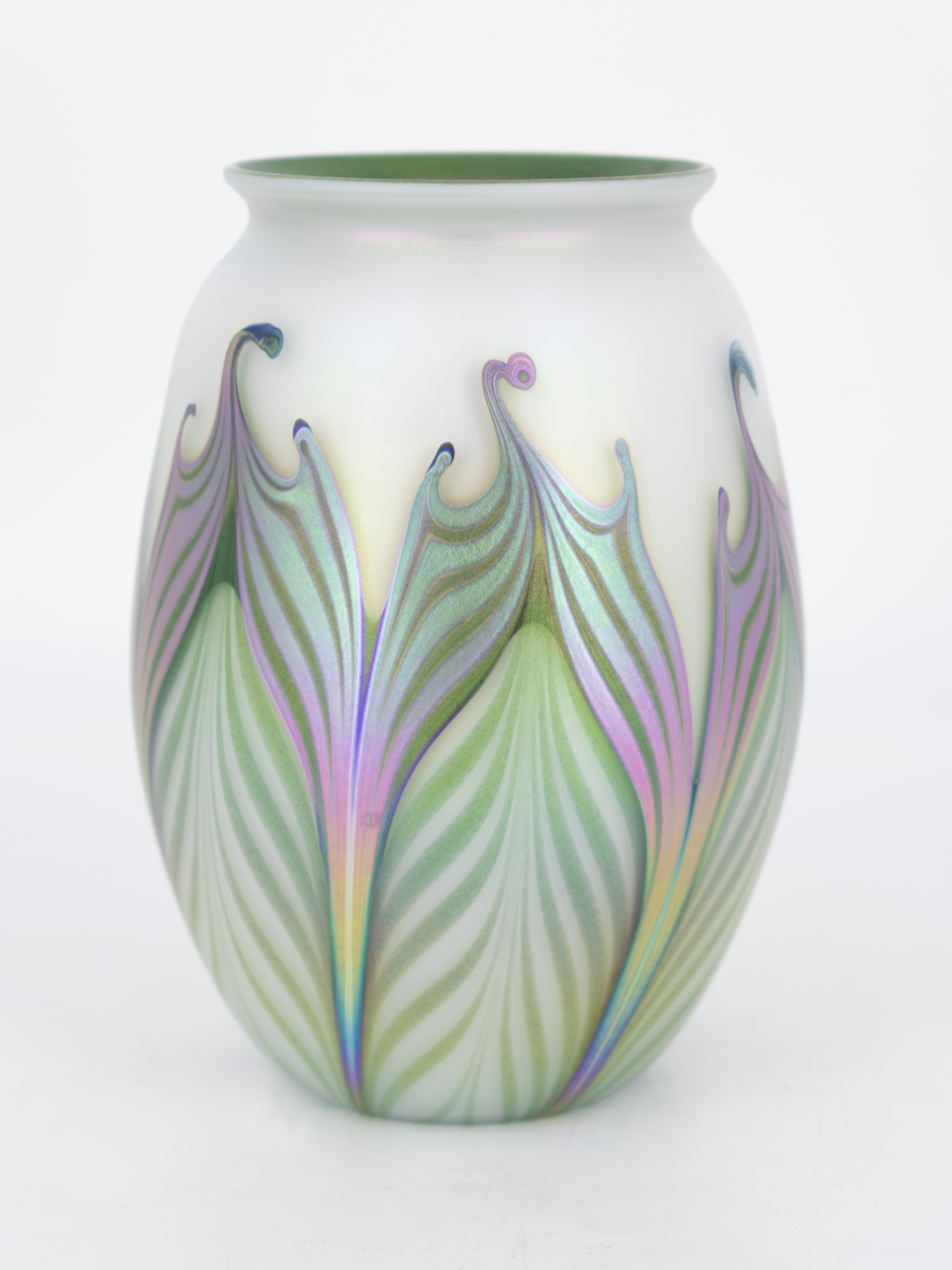 Pulled Feather Opal Vase,  8.25" H. x 6.25" DIA.