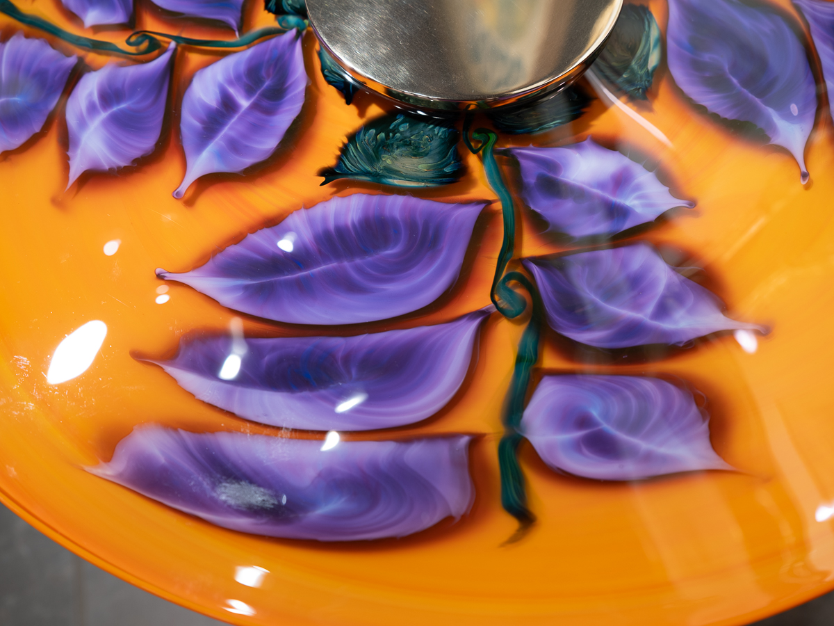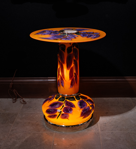Daniels' passion for glass has changed throughout the years.Daniel spends many hours sketching new designs, perfecting color formulas to personally execute those ideas to keep his art progressive. At the present time he is captivated in creating beautiful lighting, such as lamps, lighted tables as well as chandeliers. He creates beautiful custom lighting for collectors as well as businesses.