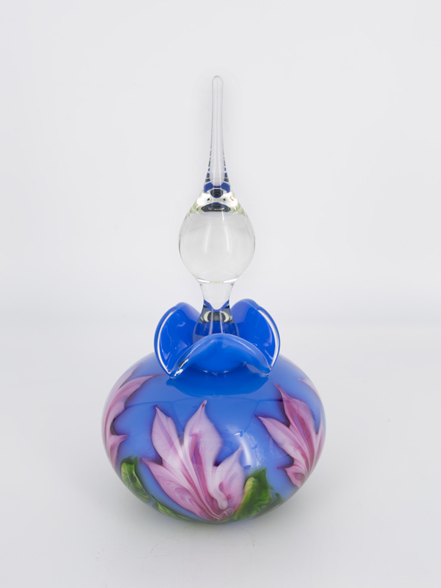 Perfume Bottle – Periwinkle Perfume with Pink Tulip kiss Decor, 11" (H) x 6" (D)