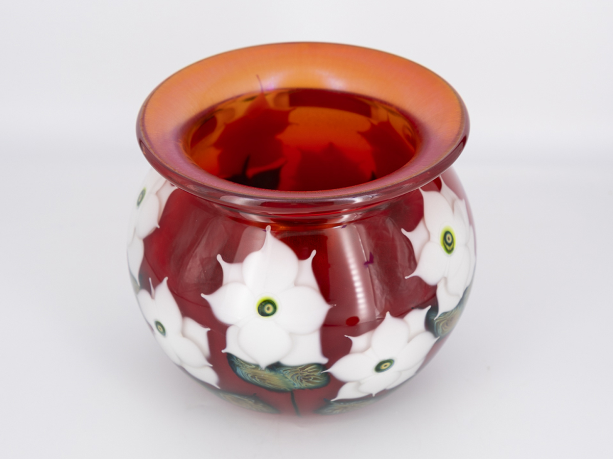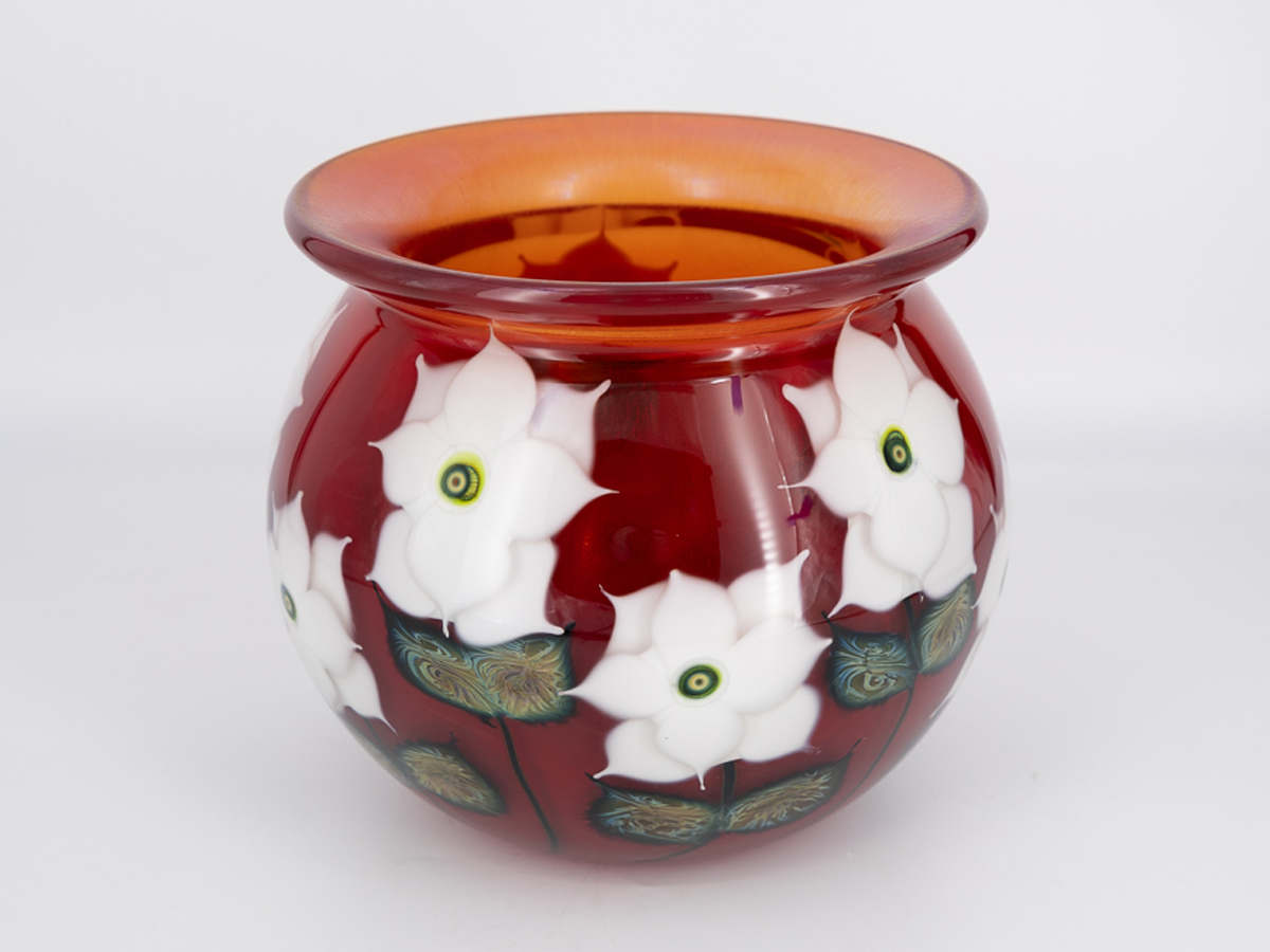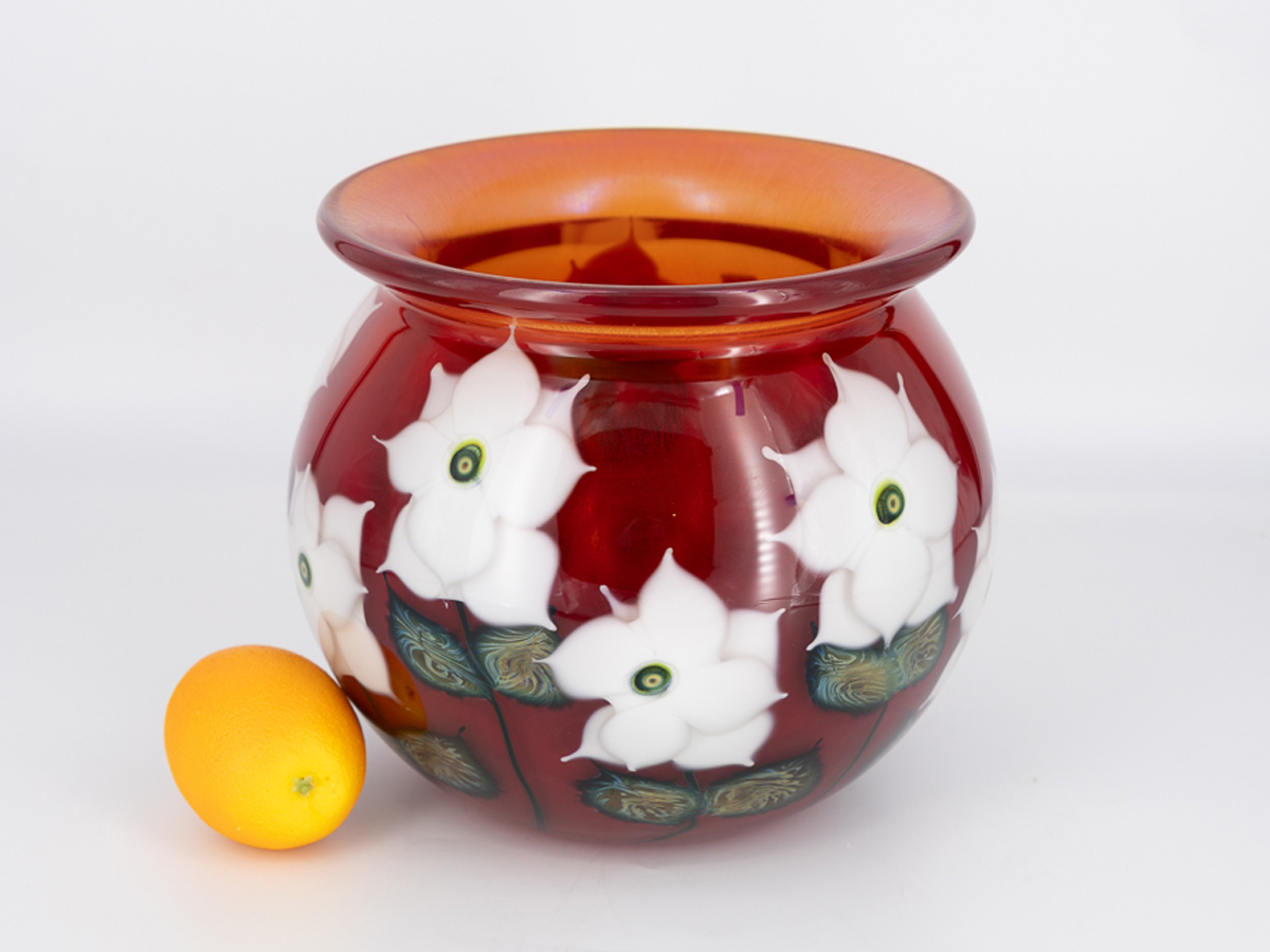 Bowl – Selenium Red Bowl with White Cynthia Blossoms, 9.5" (H) x 10" (D)