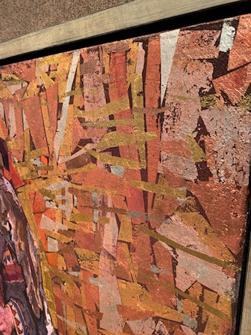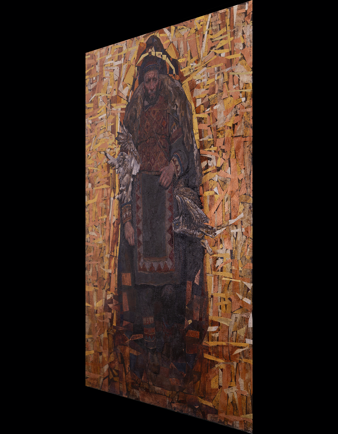 Wanderer Series: Guardians, Oil on Linen with Copper Leaf, 12K White Gold Leaf, 23K Yellow Gold Leaf Embellishment, 36" x 28"