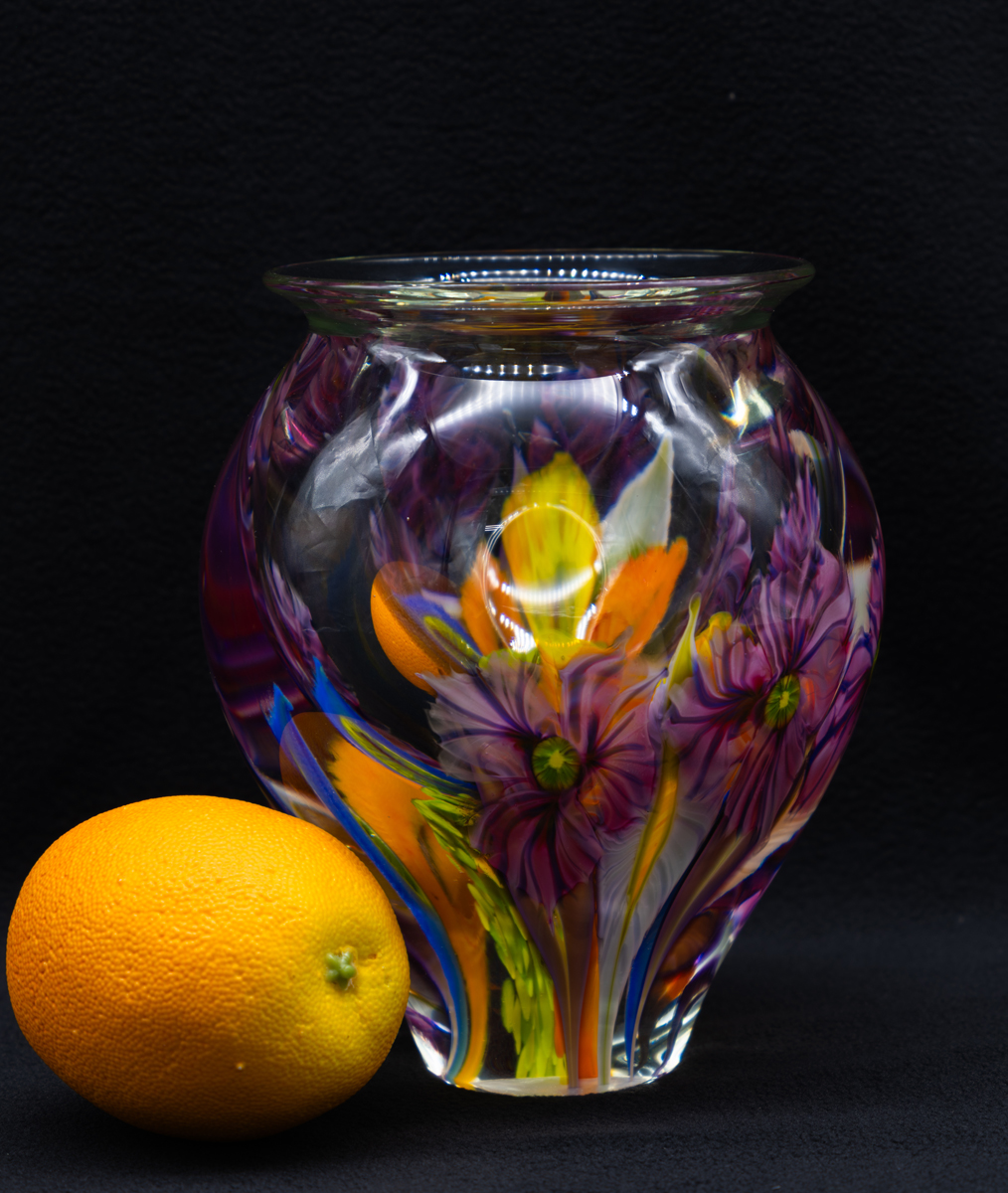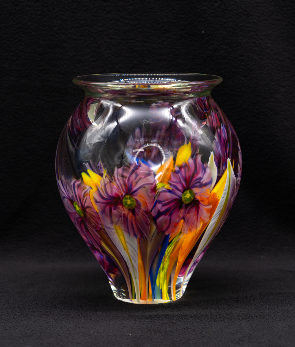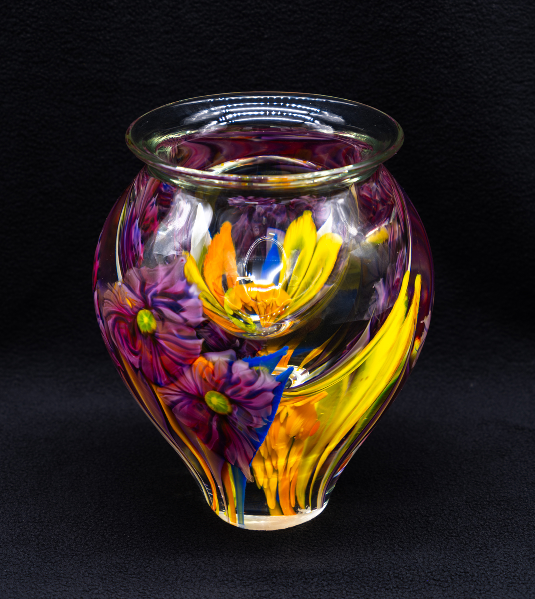 David has been creating his one of a kind vessels since 1978.  His unique handcrafted works are designed with precise attention to detail.  Developing his own glass formulas, David has created a complex palette of colors, giving him the ability to create his multi-layering and sculpting style.  Each year David continues to study and refine the techniques he uses in creating his art.