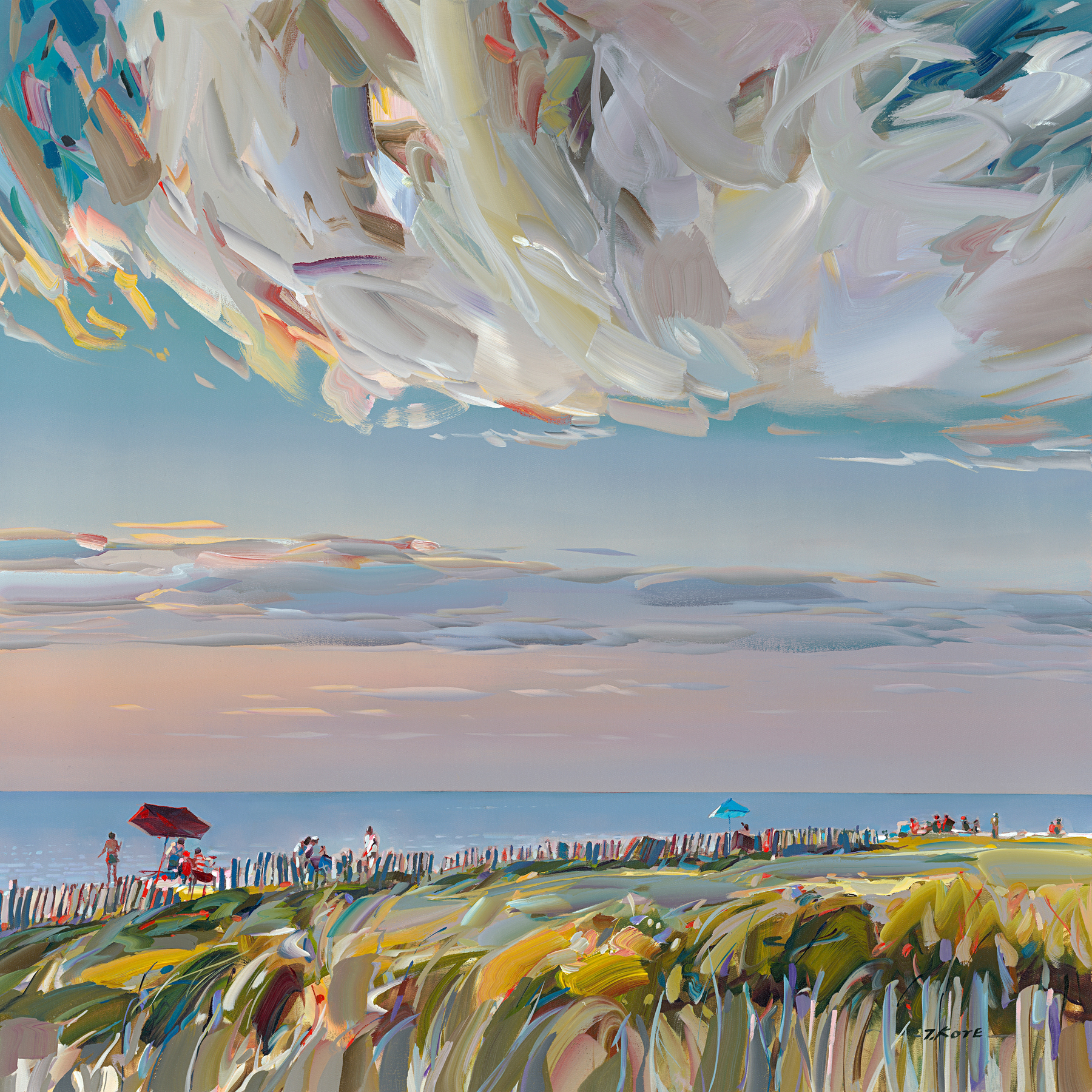 Kote's trademarks are his bold brushwork and sweeping strokes of vibrant colors applied - more often than not - with a pallet knife, while other areas of the canvas are left monochromatic and devoid of detail creating a negative space that lets the eye drift to infinity. The results are paintings that tremble in stillness with energy and light.