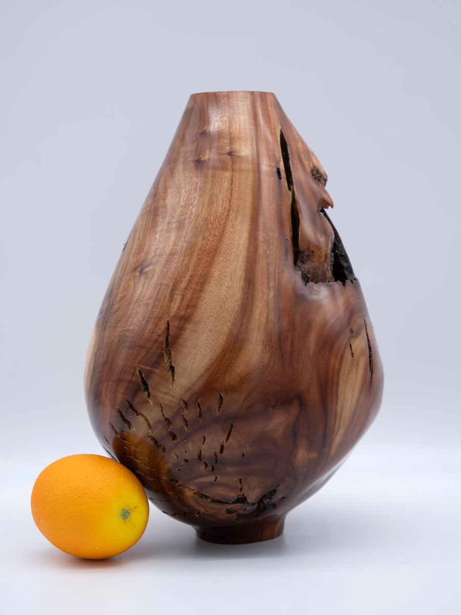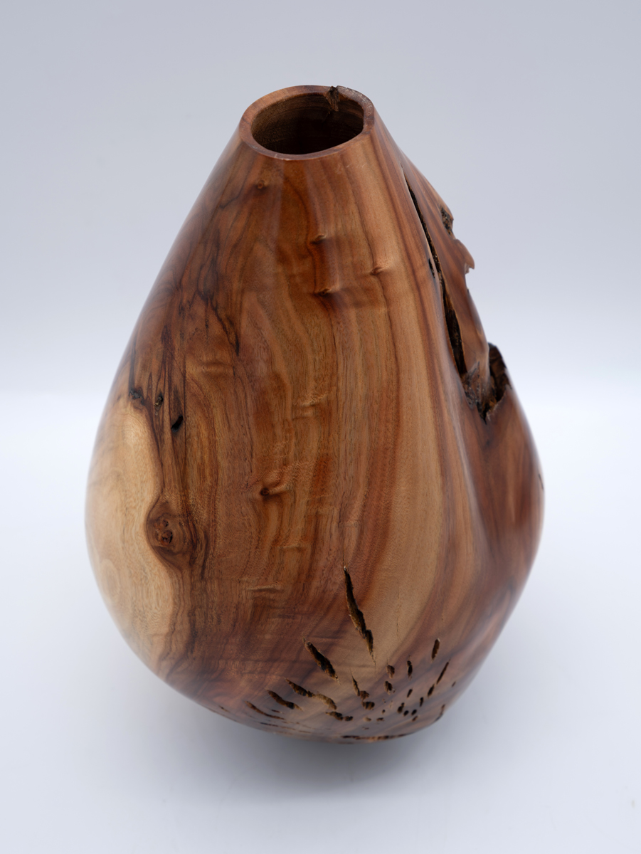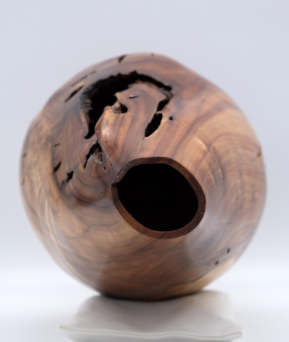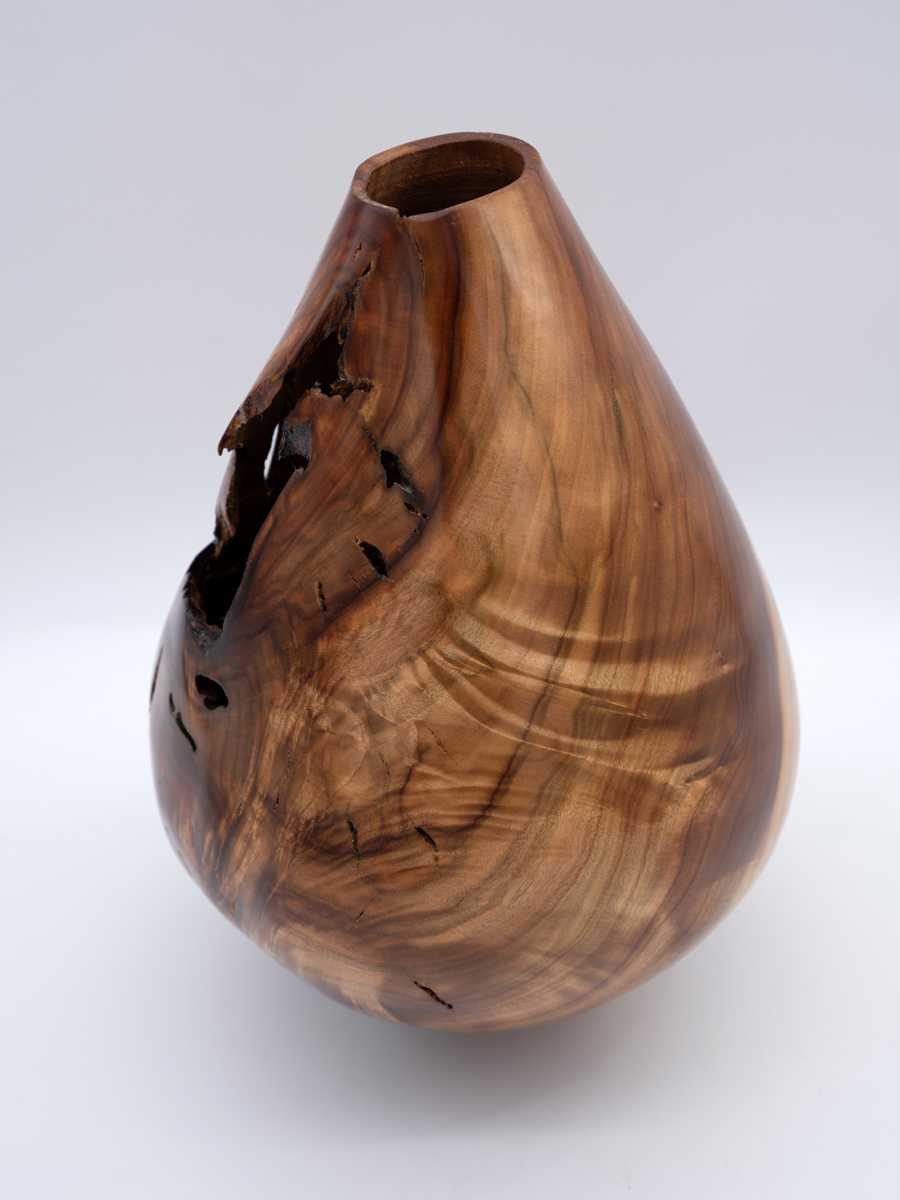 "All my bowls and vessels are made from recycled wood. This is wood from a tree that was cut down by a homeowner for safety reasons, by a builder in order to facilitate construction of a new home or was blown down by Mother Nature. This wood would have ended up in the city landfill or someone’s fireplace. Much of my wood I find on the side of the road waiting for the trash pickup.