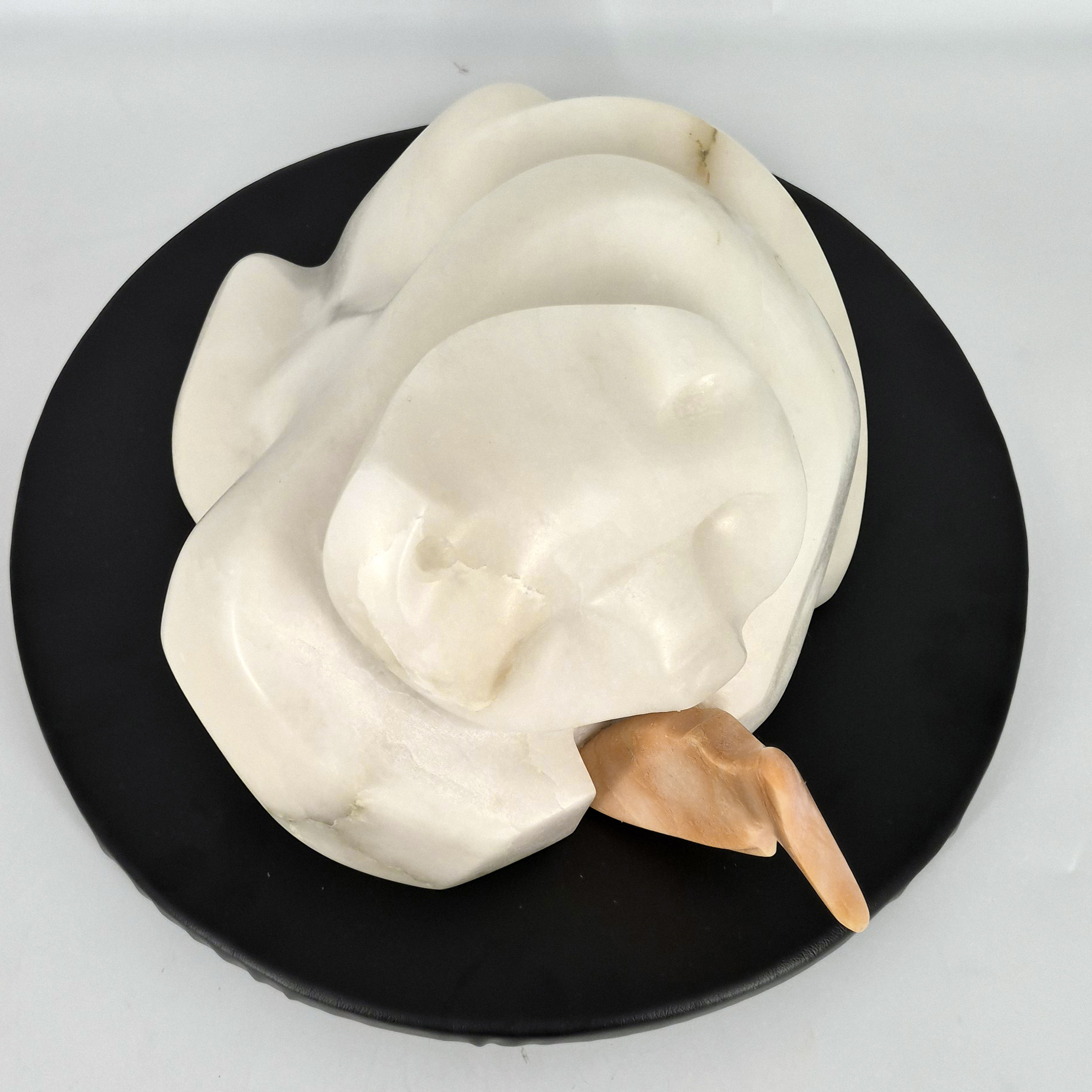 Transitioning into the life of a full-time artist required Harris’s passion to become his profession as well. Prior to developing as an artist, Harris spent many years in the area of sustainable urban development (specifically real estate and hotels), a conventional career in which he was quite successful, but not fully satisfied. The transition into a wholly fulfilling trade, was both challenging and exciting. The artistic passion that had existed just beneath the surface of Harris’s long-established business persona was finally able to present itself in tangible form. He accessed the invaluable experience of his mentors, along with his own vision, to create an evolving body of work in alabaster, marble, limestone, and bronze, often combining different elements to bring forth a duality through creation.