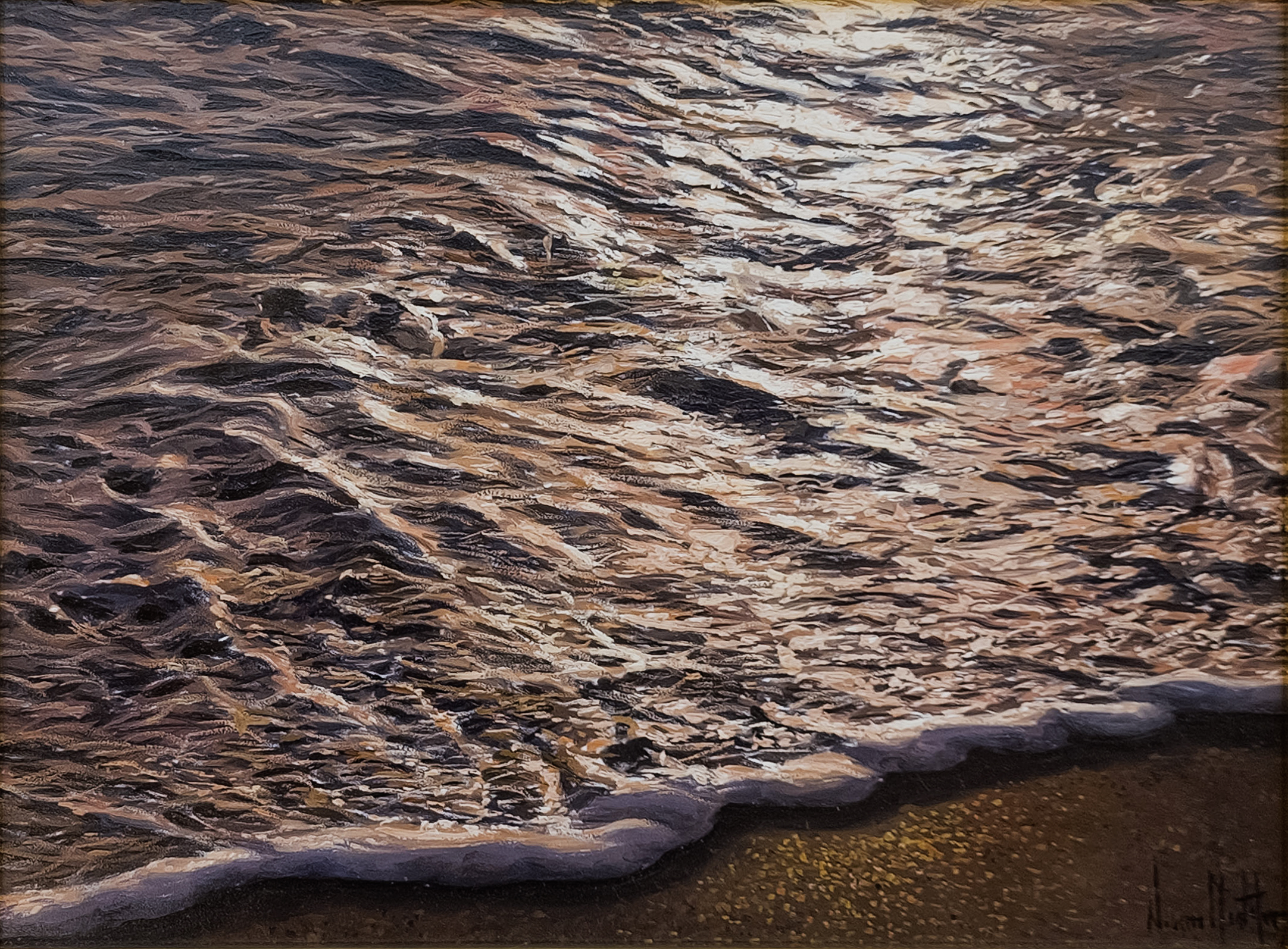 In finishing his economic studies, he returned to Alcoy (1994) and began to paint along with his father and brother, also an artist, with whom he shared a studio. It was then that he centered all of his effort and knowledge on painting, now based exclusively on the ocean and the sea as the main subject, as well as absorbing the knowledge and experience that his father offered him. After this stage in his life, Navarro established his own studio (1996), exclusively dedicating himself to perfect his technique, incessantly looking for the realism in his paintings. He enjoyed spending a lot of time alone in his studio with his only company being Bach, his favorite Baroque composer, and searching among his files. A huge classical music lover, he feels a special sensitivity towards baroque music, which always accompanies him throughout most of the day. Navarro tries to show the spectator a window that shows the beauty of the sea, as he perceives it; in addition he confesses that his works reflect to a great extent his frame of mind.