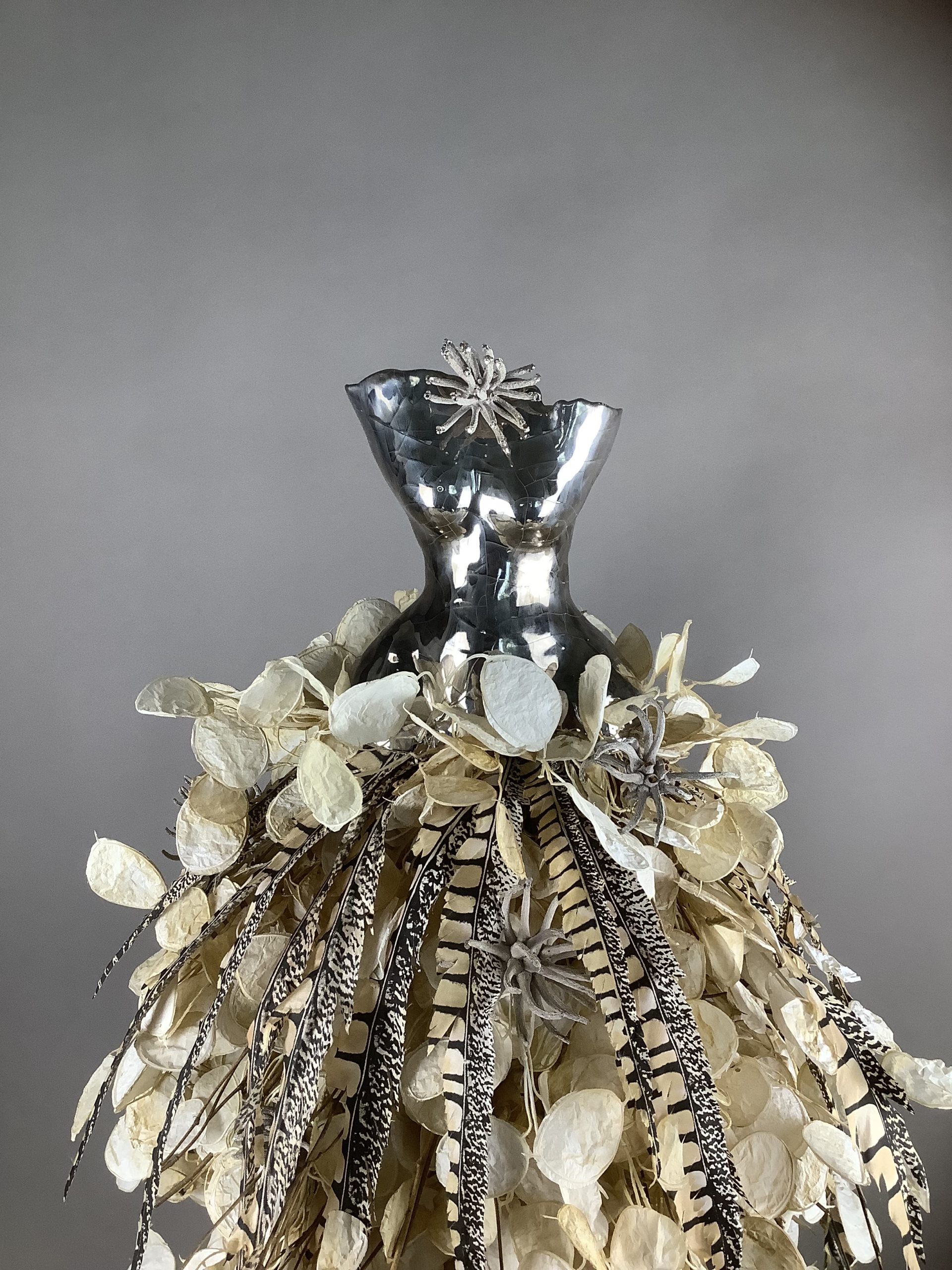White Gold Over-Glaze Clay Torso with Silver Dollar and Feathers