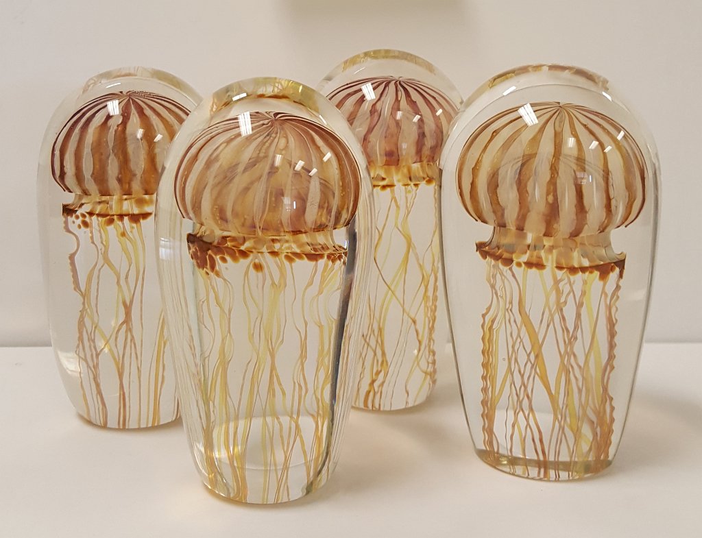 - Moon Jellyfish Series portrays these ethereal creatures in solid clear sculptures.