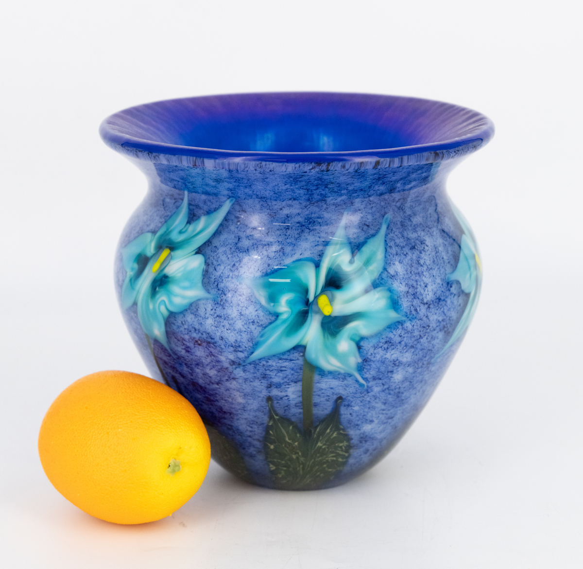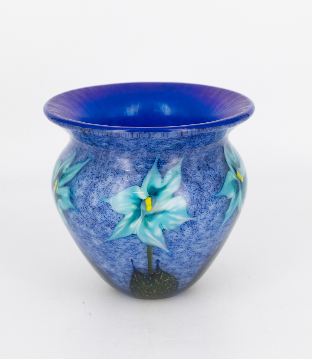 Cobalt Cpyriot Bowl with Aqua Fantasy Flowers