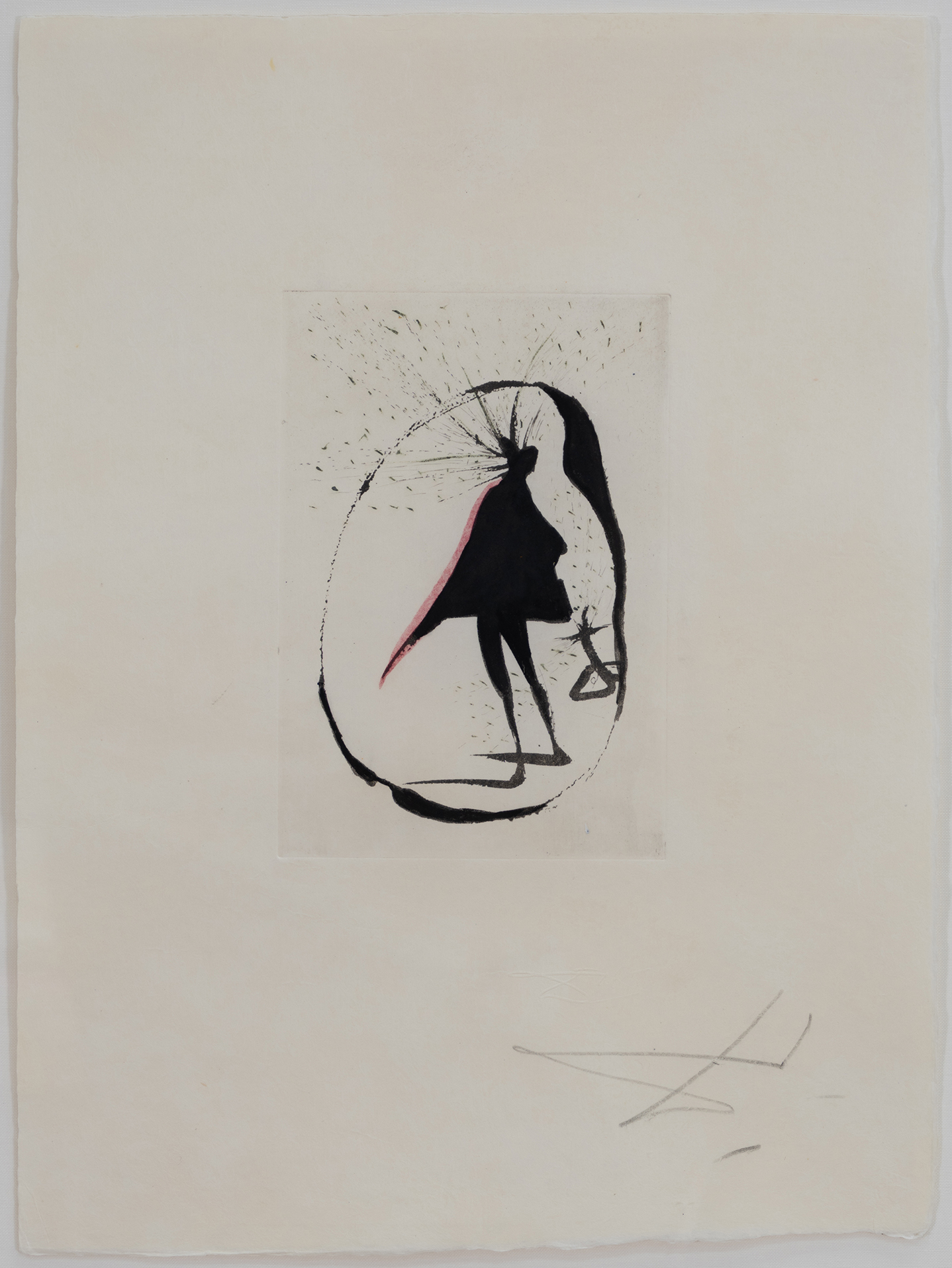 The artist worked extensively in the graphic arts, producing many etchings and lithographs. While his early work in printmaking is equal in quality to his important paintings, as he grew older he would sell the rights to images but not be involved in the print production itself. In addition, a large number of fakes were produced in the 1980s and 1990s, thus further confusing the Dalí print market.